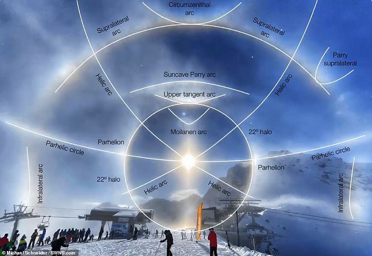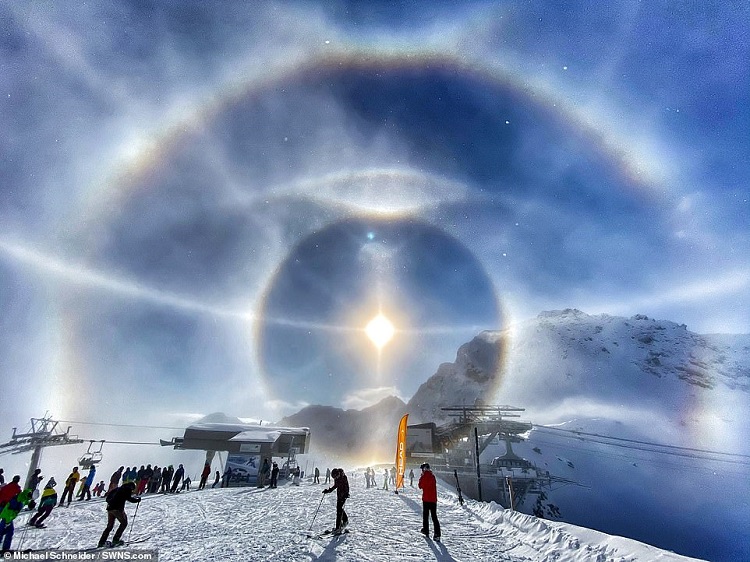While he was skiing down the mount, Schneider looked over his shoulder towards the top of the mountain and beheld the stunning phenomenon as it was forming.