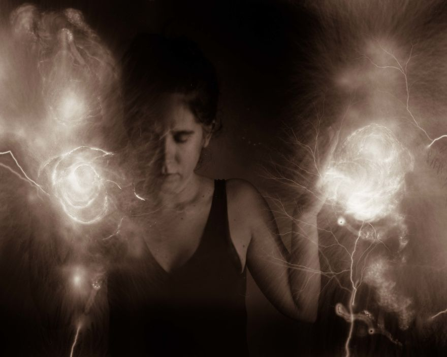 “In this self-portrait series, I harness static electricity to create random patterns of light on film,” Kate wrote on Bored Panda.