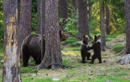 He saw a mother bear resting and next to her were her three cubs dancing as they held each other’s hands.