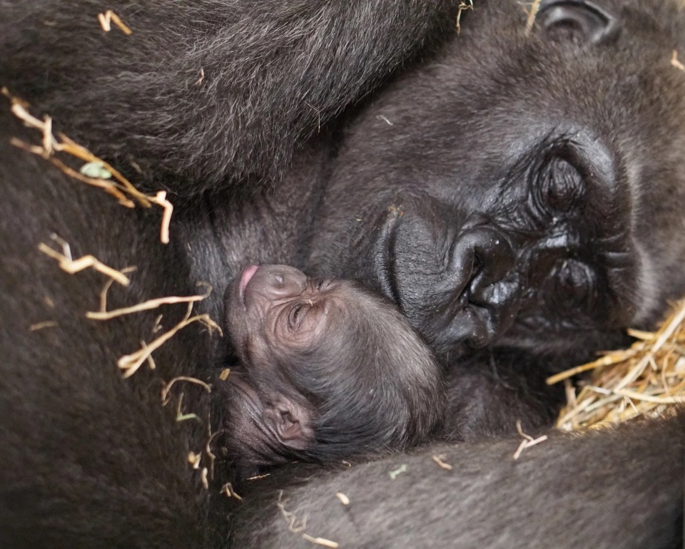 As the officials confirmed, the baby gorilla was born healthy at 6 pounds and 3 ounces, which is above the average for newborn western lowland gorillas, even though his mother had been suffering from bleeding during her pregnancy.