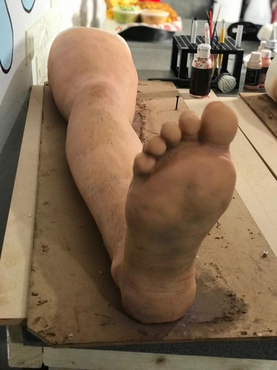 “Lots of the detail took a long time, like hand painting the tattoos onto the body parts and even hand painting individual hairs onto the arms and legs.”
