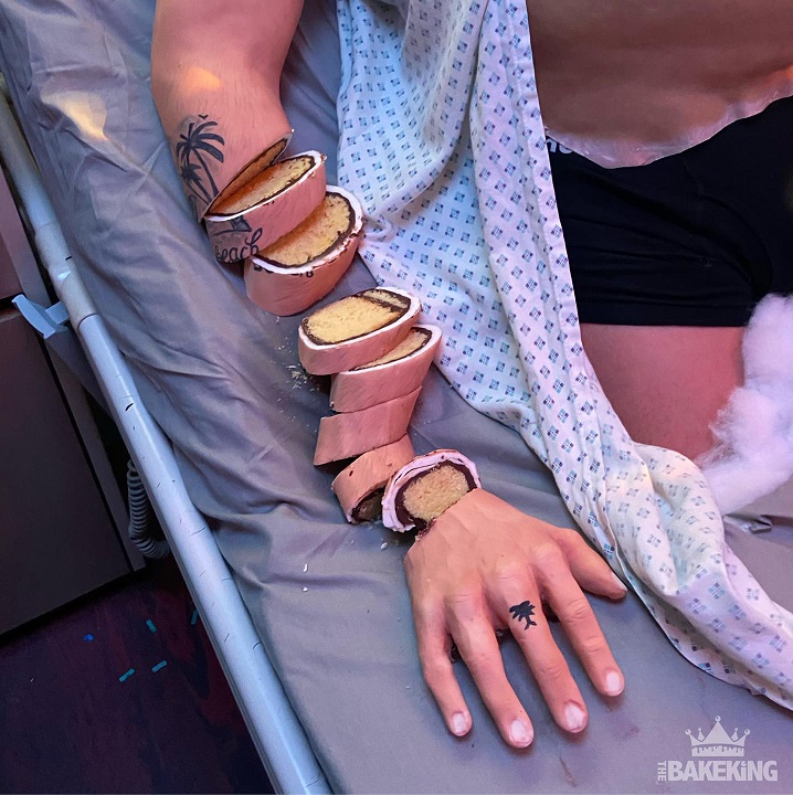 “Made for his music video ‘Feel Away’ – all his body parts were made from vanilla cake and chocolate ganache with sugar paste details!” The Bake King wrote as he shared photos of his creepy creation.