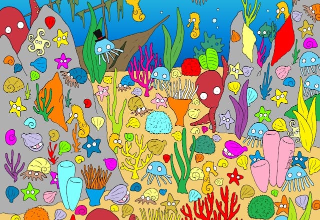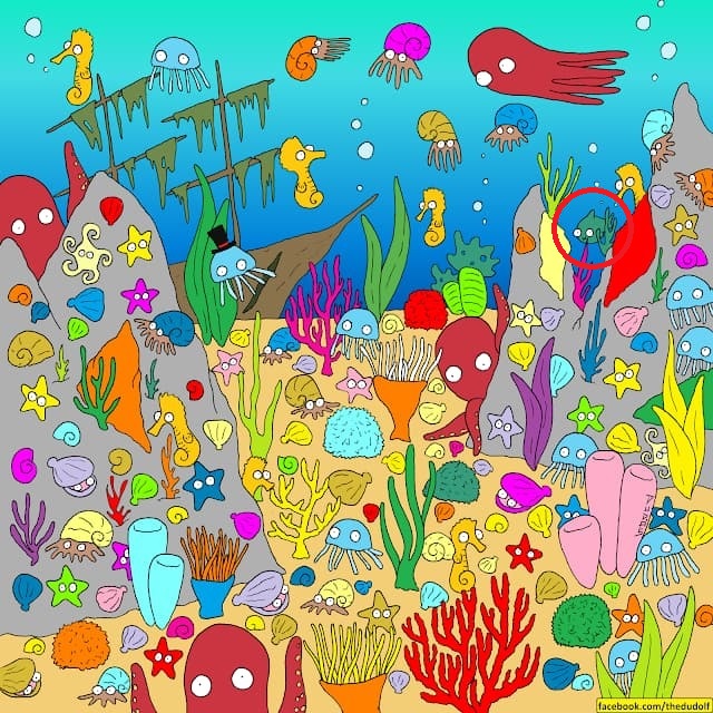 Gergely Dudas, a Hungarian artist who is well-known for making challenging brain teasers that put viewers to the test, has struck again with another brilliant design showing sea critters at the bottom of the ocean.