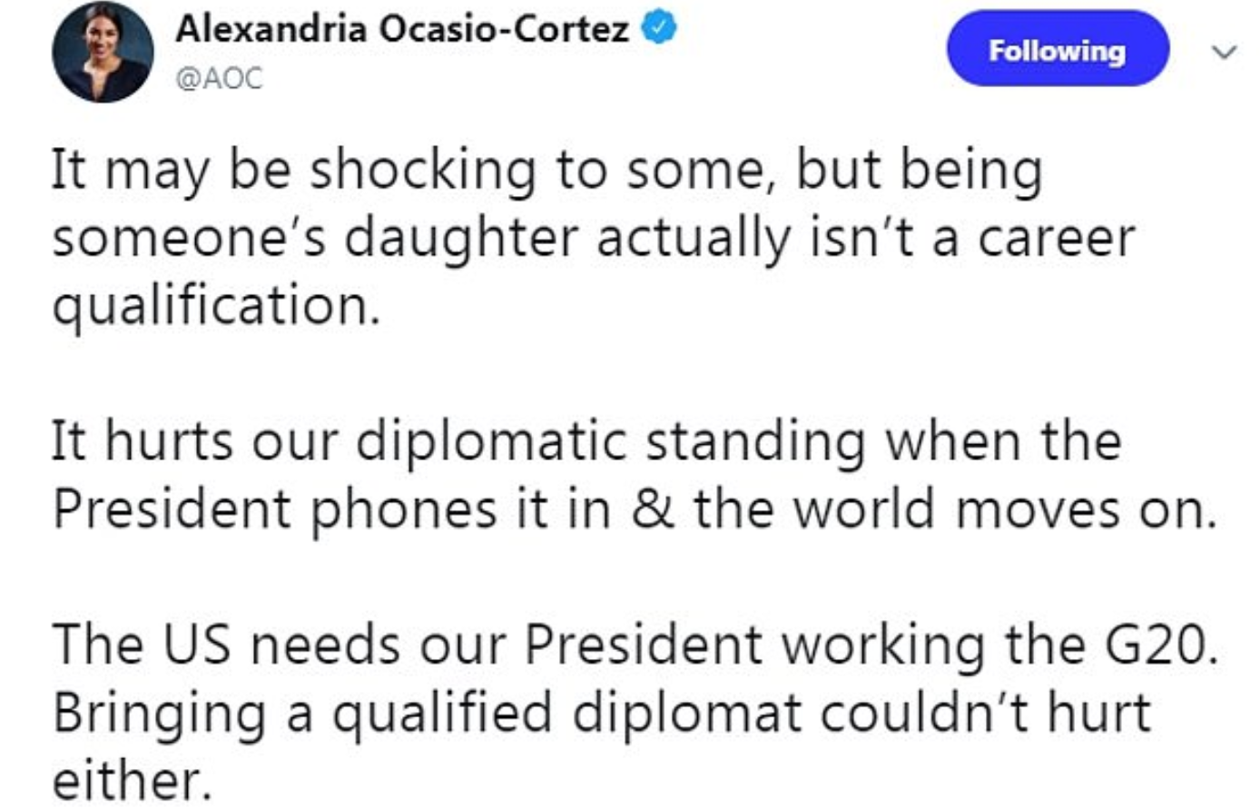 It started with a tweet by AOC where she said that being ‘someone’s daughter wasn’t a career’. Without naming, she made her target clear.