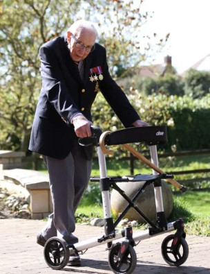 This war hero was adept at raising at least Euro 1,000 for NHS Charities Together by walking 100 lengths of his garden in Marston Moretaine with the assistance of the zimmer frame.