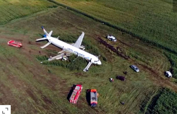 Yusupov took the decision to make an emergency landing in a cornfield less than a mile away after realizing they would not make it back to the runway. Yusupov landed the plane with no power in either engine, and the landing gear retracted.