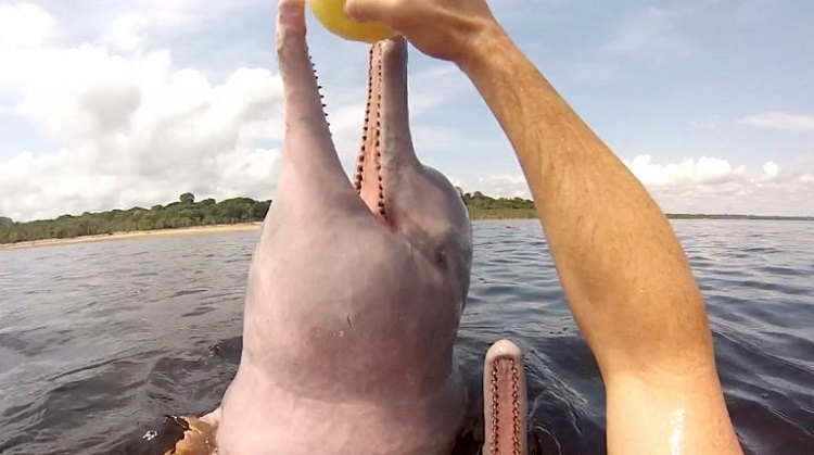 Wild pink dolphins are known as ‘botos’ in Brazil and the creatures have come to know Igor quite well. Using a trick to attract them, the dolphins always come close to Igor.