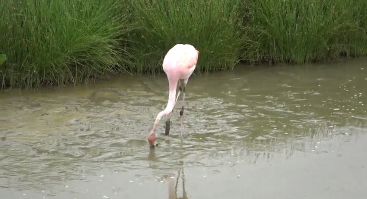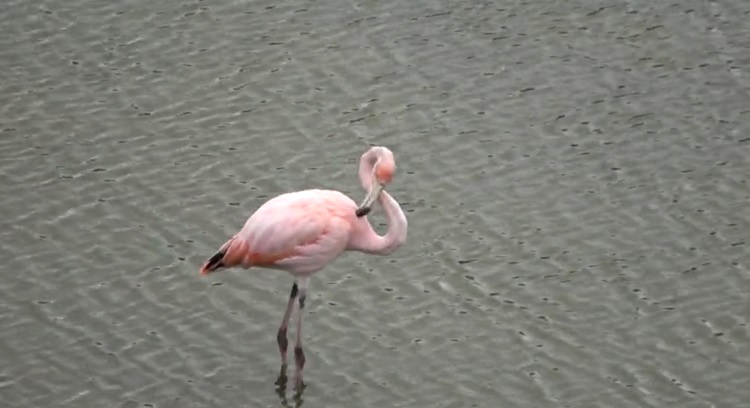 The beautiful pink color of their feathers comes from a diet almost exclusively made up of shrimp. It’s rare to see these magnificent birds actually feeding is a rare sight and when one started eating in front of some tourists, they wasted no time in capturing it on film as you can see in the clip below.