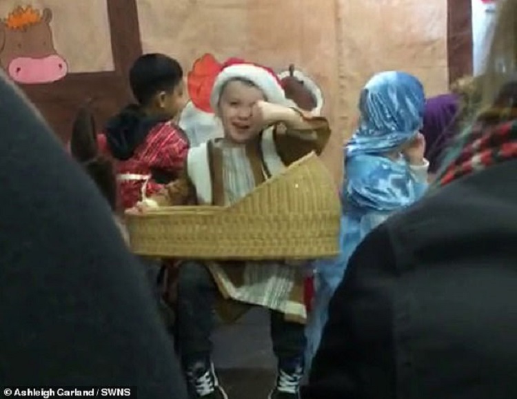 Charlie’s proud mother Ashleigh Garland, 27, was watching the whole thing which pleased Charlie no end as he was grinning from ear to ear. So happy was he, in fact, that he got carried away and forgot that he was supposed to play Joseph.