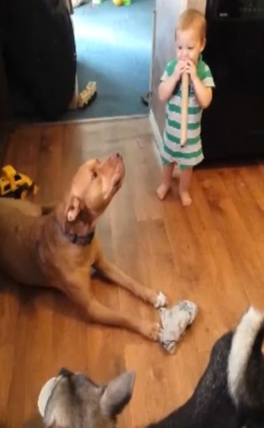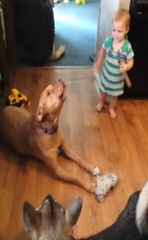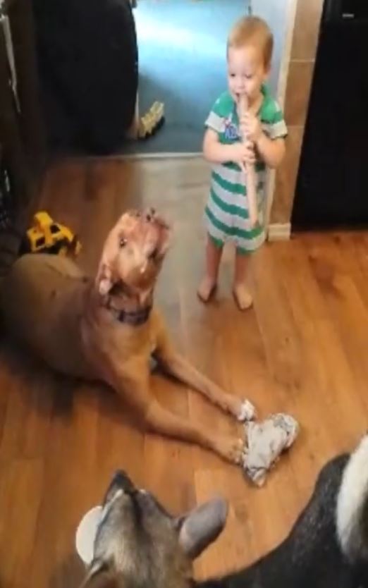 Here is a video of an adorable Pit Bulldog that is probably playing with his brother and got a vibe and started showing off his talent that the world had no idea about.