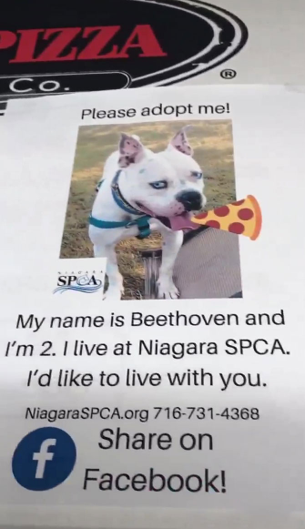 An animal shelter in Niagara Falls, New York, named the no-kill shelter, teamed up with a local pizza shop, a franchise of Just Pizza & Wing Co. in Amherst.