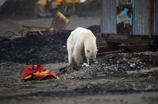 The bear was searching for food among the rubble and walking directly in front of moving traffic in busy city roads. According to locals, it has been the first time a wild polar bear has been spotted in the city since the 1970’s.