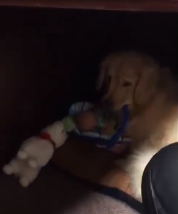 Soon enough, much to their amusement, the officers found out that the toy thief was, in fact, their adorable Golden Retriever named Ben who works as a therapy dog.