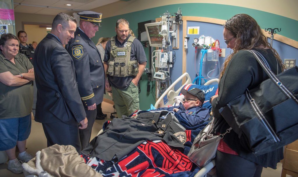Law enforcement gathered at Albany Medical Center in New York to show support for an 11-year-old boy diagnosed with brain cancer.