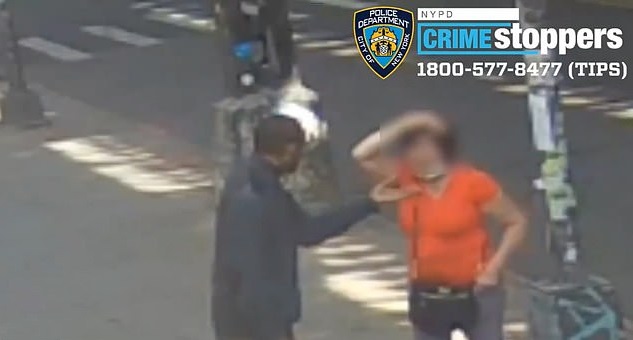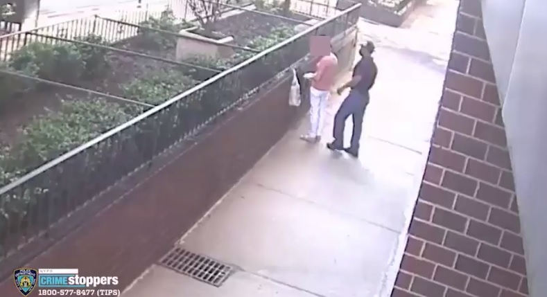 The incident took place on a sidewalk in Bushwick, Brooklyn, where a man with a dark complexion was caught on surveillance camera walking towards a 78-year-old lady.