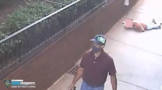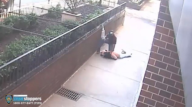 As seen in the surveillance footage, the suspect approached the 64-year-old woman from behind before placing her in a chokehold and tackling her to the ground.