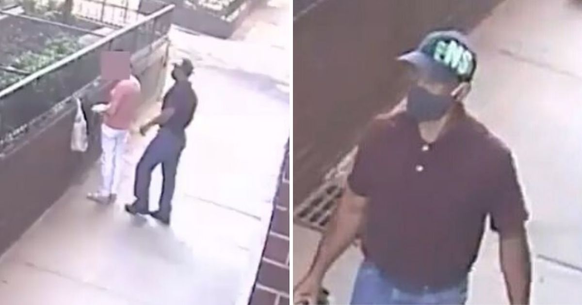 The police are on the hunt for the New York man who had ambushed and robbed an elderly lady before fleeing the scene.
