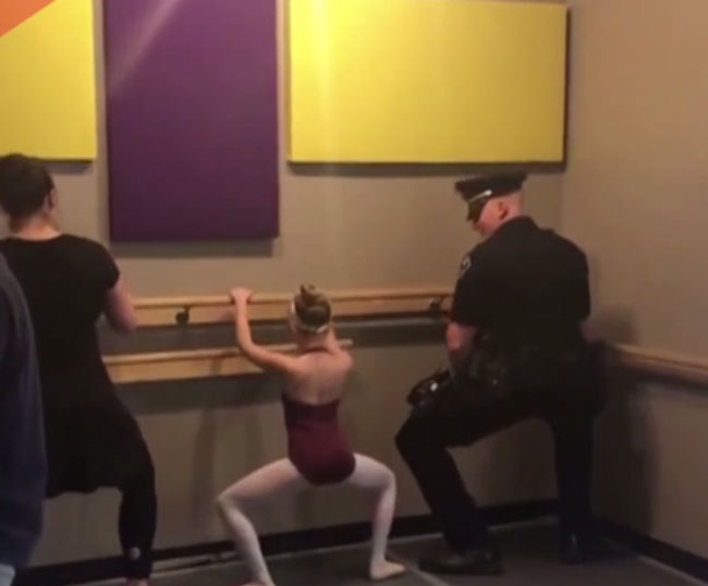 Adorable video shows officer Cody Brown and his little daughter, Tessa doing their squats as the dance teacher instructed them.
