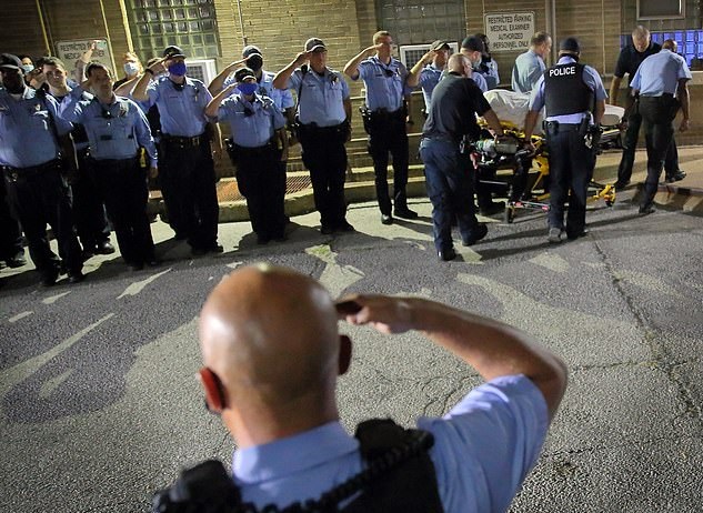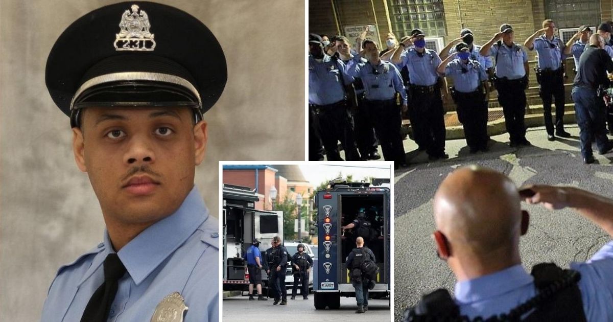 A “hero” police officer, who was a father-of-three, was shot in the head by a man while responding to a report and searching for a shooting victim.