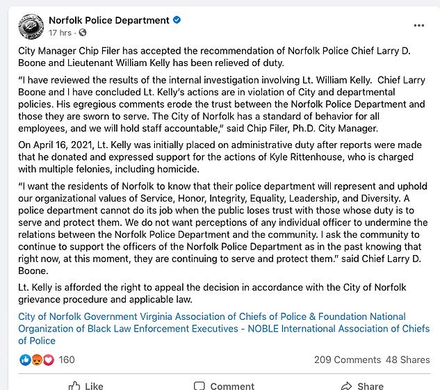 Norfolk Police Lt. William K. Kelly from Virginia lost his job after a hack revealed the names of people who donated to the teen’s legal fund.