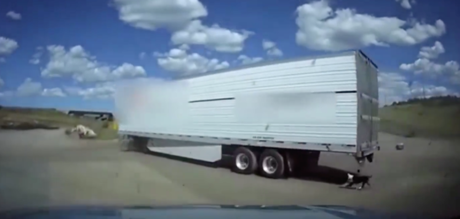 The truck had started moving with the dog still tied. The officer acted quickly at the moment and rushed to save the dog.