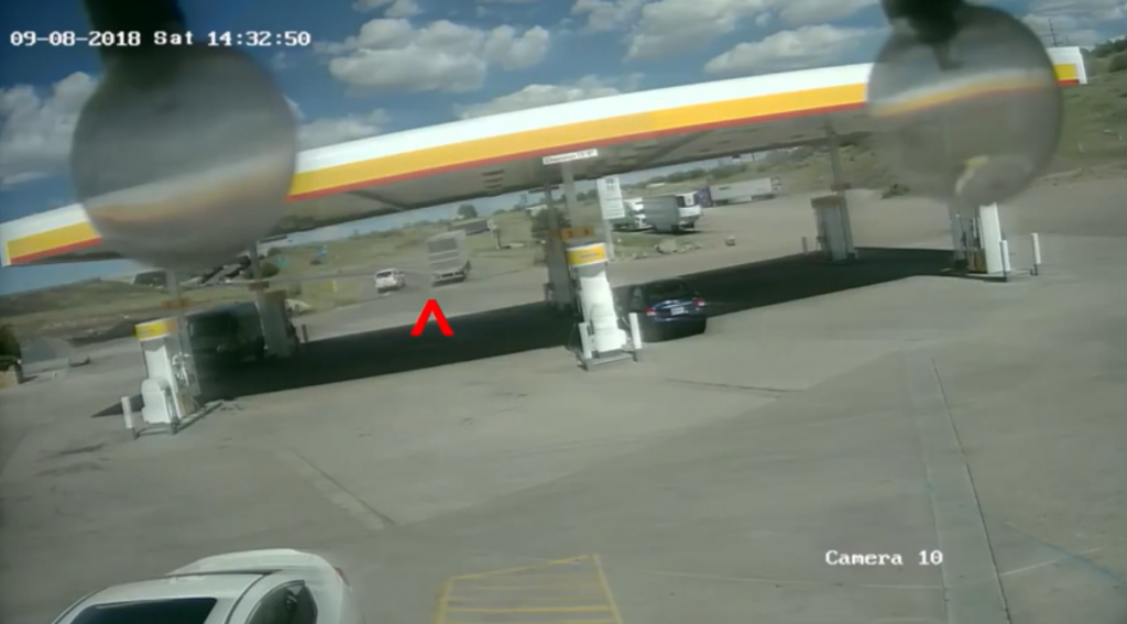 While on the gas station, the officer was looking around when he spotted a dog tied up at the back of a truck that was at the station for a fill.