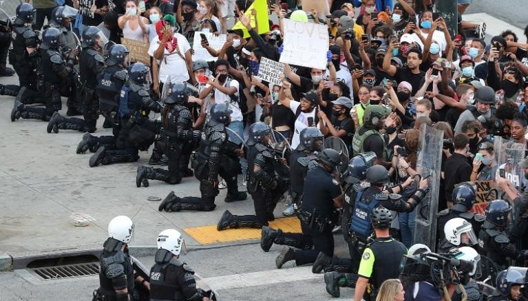 In their message, the police force insisted that kneeling “has a very positive and engaging effect” and that, when done by police officers, it “has a positive reaction on the protest groups.”