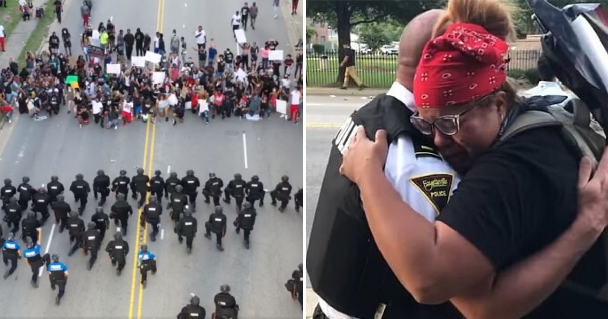 While some riots involve the destruction of property, burning, and looting, there are also plenty of peaceful protests during which the police and the community come together as one.