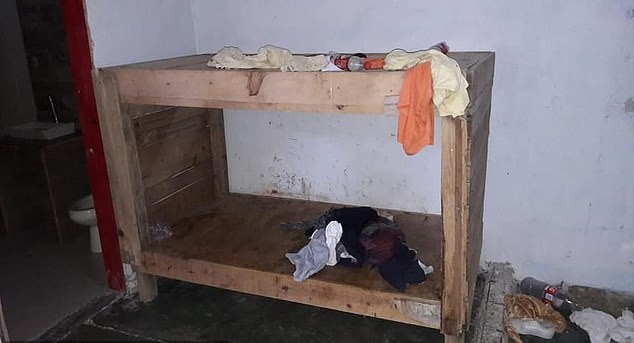 Celaya municipal police shared photos that show the room’s filthy conditions with dirty clothes on the bed frame and trash littering the floor.
