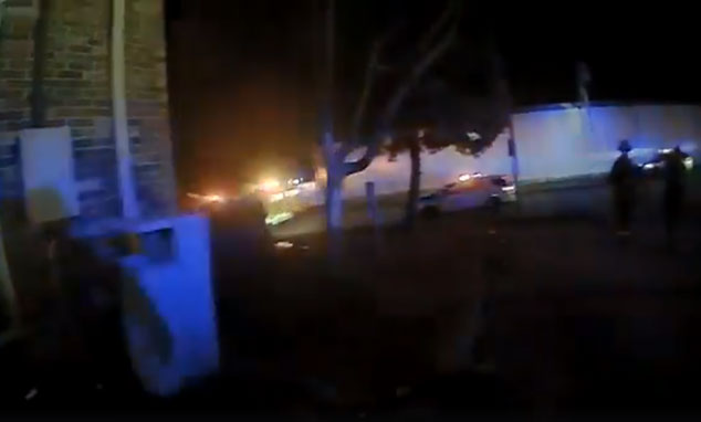 “Get them by the window. Send them down. Drop him. Drop him. Keep going. Stay right here. I got them. Go. Go” one officer can be heard saying in the body camera video.