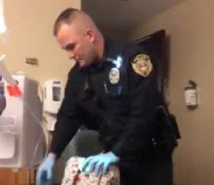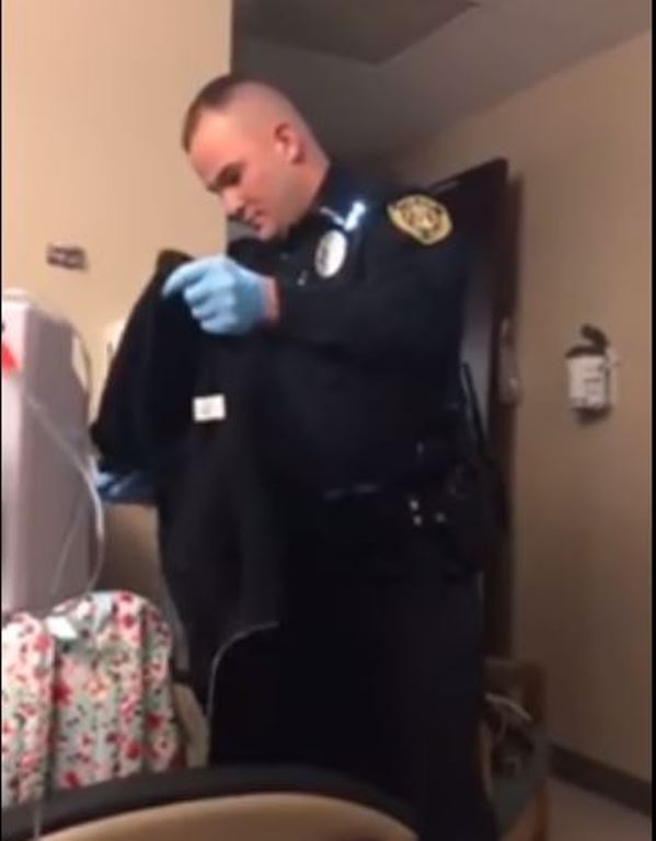 At one point, a woman in a white lab coat entered the room. The officers explained the situation, adding the patient had another bag he wouldn’t let them check.