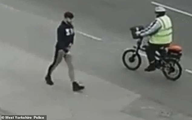 Detective Inspector James Entwistle, of Leeds District CID, said: ‘The circumstances of this incident are clearly very disturbing and we urgently need to identify the man shown in these images.’