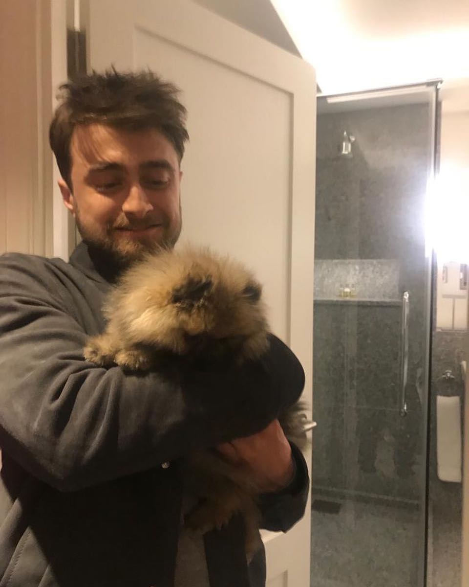 A pampered Pedigree Pomeranian named Burly Bear, from Borough, hangs out with only A-listers like Lily Collins, Daniel Radcliffe, Keely Hawes, Nichols Hoult, and Alan Carr.