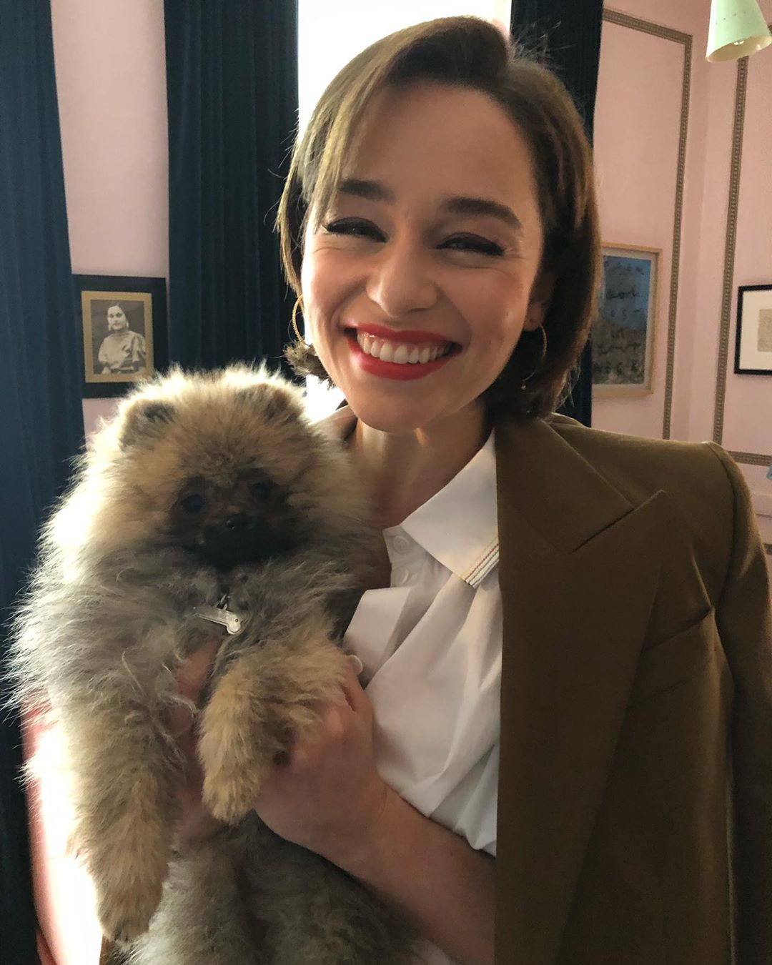 Actress Emilia Clarke once gifted Burly a doggie rain mac. Michael said: “She said, ‘I’ve got this jacket I’d love to give him’.”