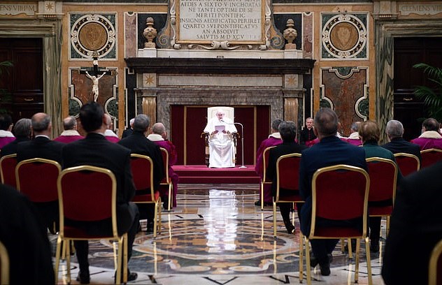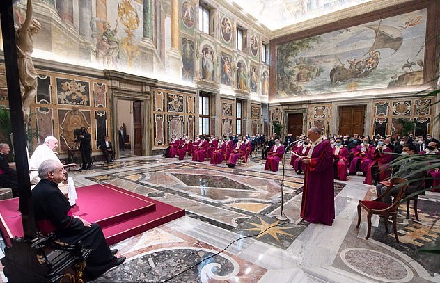 The 84-year-old told members of a top Catholic Church tribunal Roman Rota: “I would like to speak to you standing up but sciatica is a troublesome guest.”