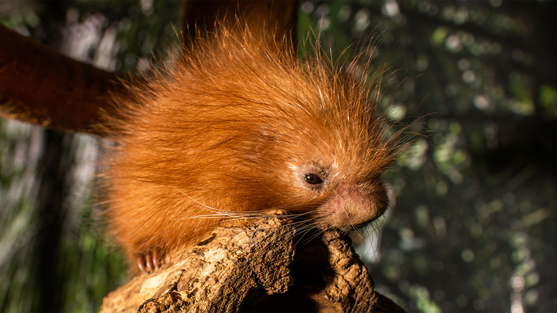 In November, the baby porcupine was born with soft, fuzzy quills and rusty red fur.