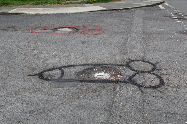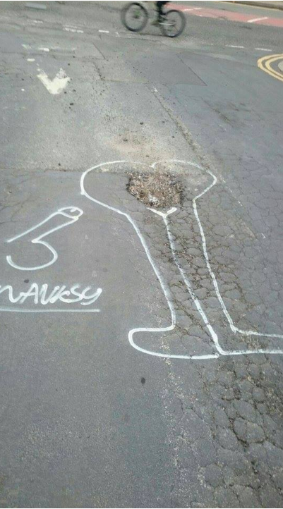 The locals in Teesside after the potholes are fixed because there were spray painted penises drawn around them.