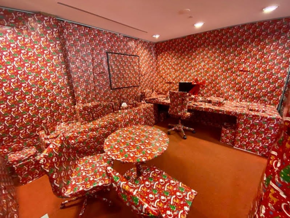 After Jo’s boss called in sick to get some time off, the worker decided to put her job on the line and get back at them by covering their office in wrapping paper.