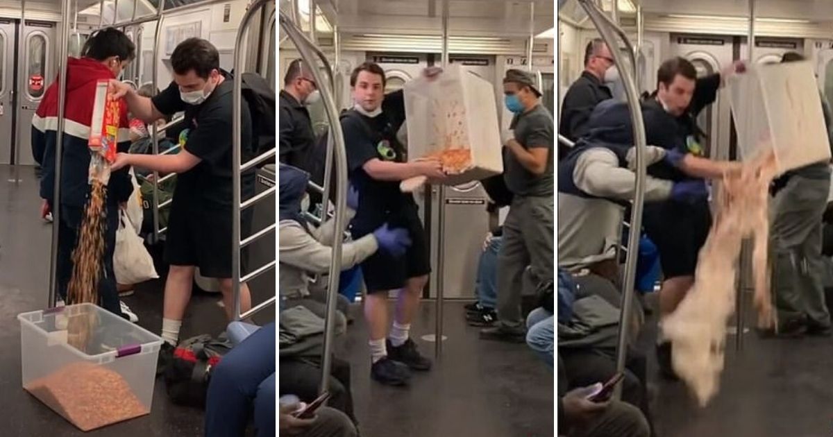 A famous TikTok user has been described as ‘despicable’ by the New York’s Metropolitan Transit Authority after he was filmed pouring a tub of milk and cereal all over a New York subway train car.