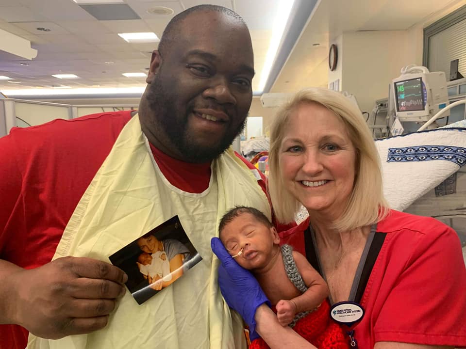While their son was being taken care of, the parents went through David’s old photos and came across a picture of him as a baby being held by a nurse that looked remarkably similar to the one looking after Zayne.
