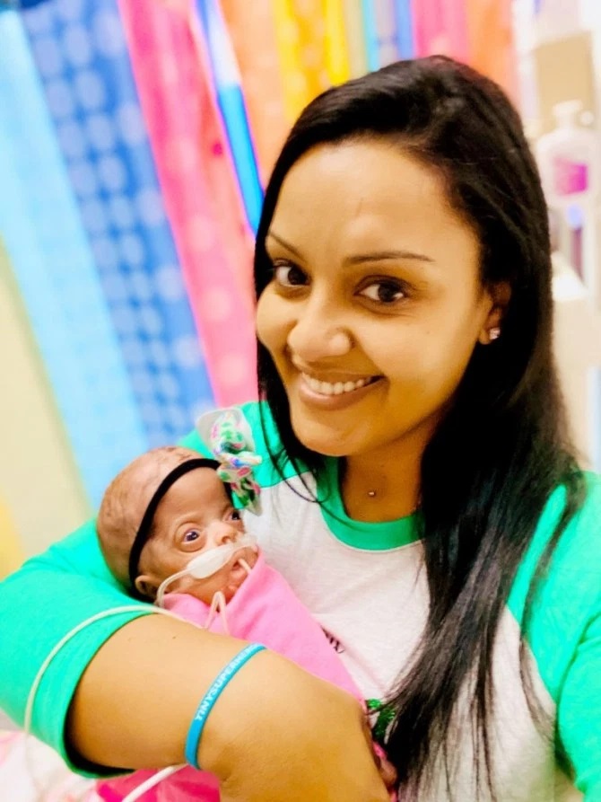 Despite the terrifying odds, the twins, who were born in their amniotic sacs weighing just little over one pound each, are now thriving following four months at the NICU.