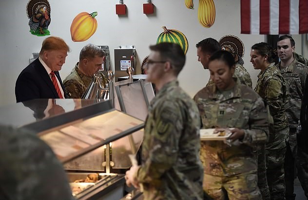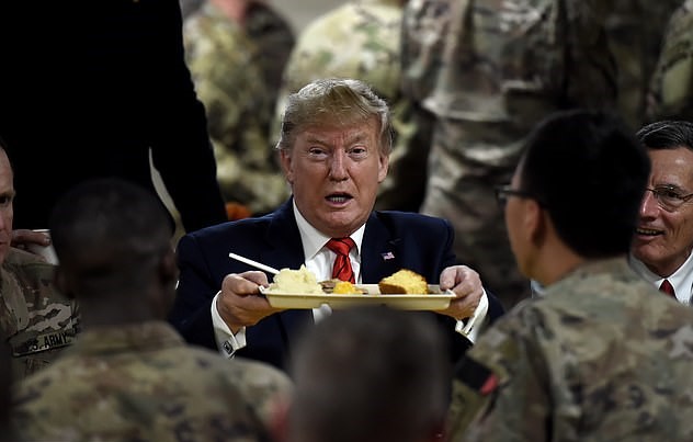 President Trump was pictured serving turkey to soldiers in Afghanistan during his surprise, and first, visit to the country on Thanksgiving.