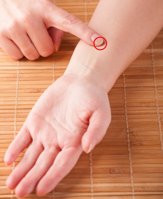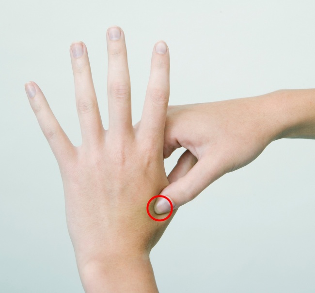 Use. Useful for dealing with headaches, nausea, and fainting. Apply pressure with your fingertips and hold for one minute.