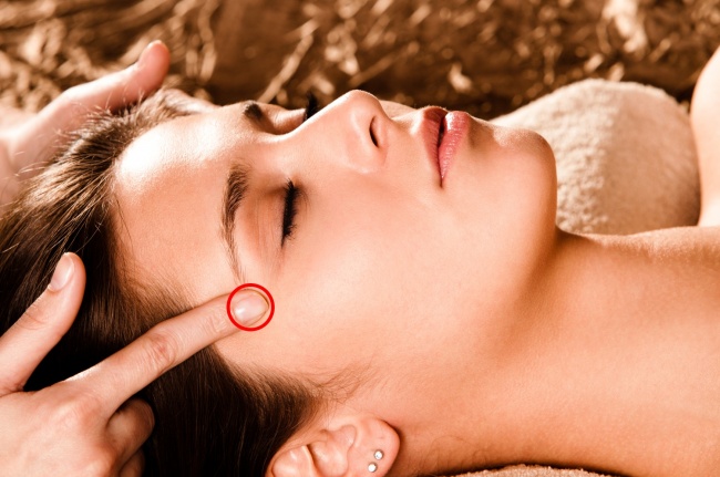Use. It can help with migraines and reduce eye fatigue. Slowly rub the point with your fingertips until you feel relief.