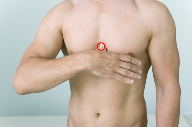 Location. The Pericardium Point you will found on the inner forearm about 3 fingers from the wrist, right between two tendons.