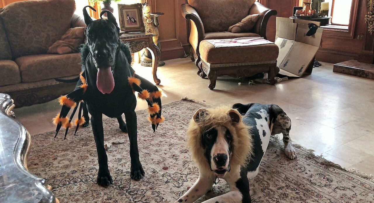 Just like all other pets get ready, the mother of these two great Danes decided to get them the perfect costumes too. Now you may think that dogs like the costumes or not, but these ones did.