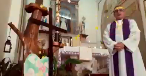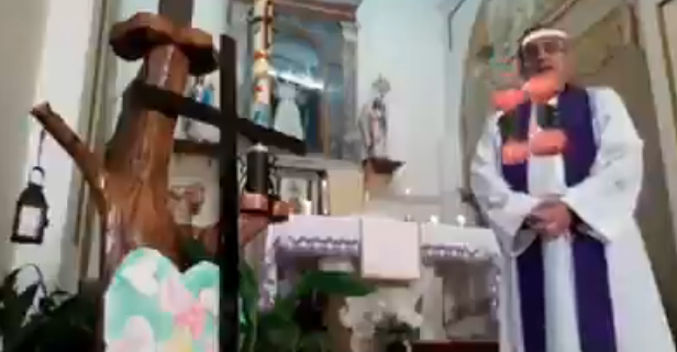This footage was shared by Gavin Shoebridge who added that in Italy, a priest live-streamed a mess because of the coronavirus but unfortunately, he turned on video filters by mistake.