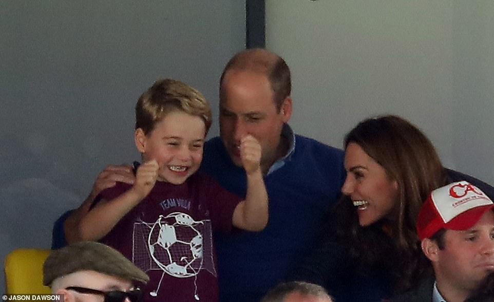 The duke was all happy and she was seen putting his arm around his eldest son as the pair relished the excitement of their first game together.