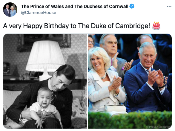 The photograph was shared by both Prince Charles and his wife, Camilla Parker-Bowles as a wish for Willam, who recently turned 39.
