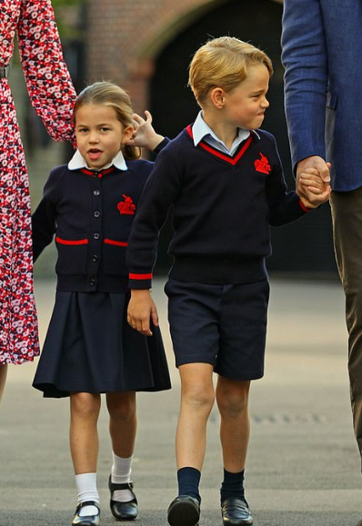 Charlotte will be known by Charlotte Cambridge in the school. The little princes first shyly hid behind her mother and then went in the building of the school as she waved her mother goodbye.